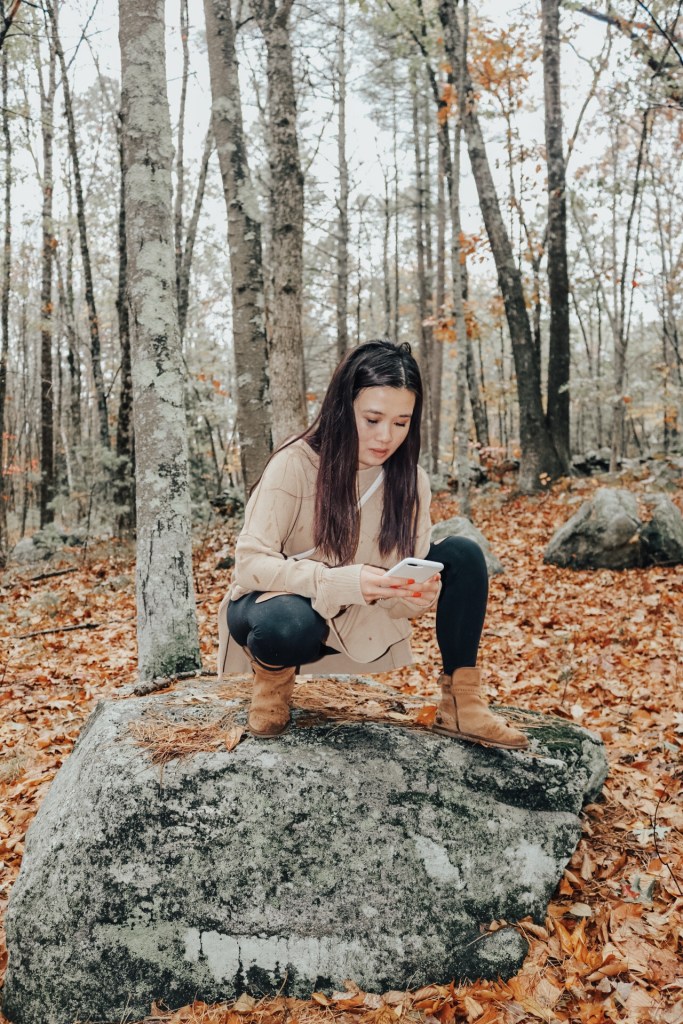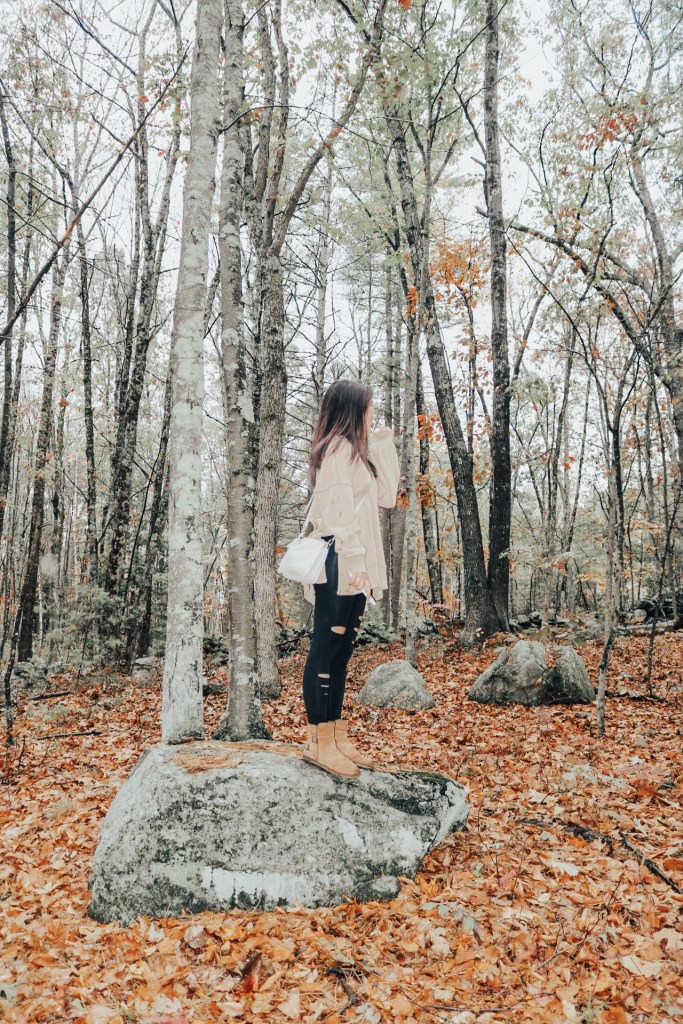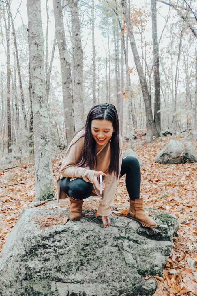 So this infamous rock really made the shot. No but seriously I told Vy to be as natural as possible and this seemed like a good spot to stop. She’s the most perfect model so that makes my life easier. I could never, hence why I’m behind the camera. I will say that is so difficult shooting in the rain. I was struggling and it wasn’t even raining hard but every stop we made I covered up my camera with my jacket. Gotta protect my baby. I wish I got some behind the scenes photos of that. They say you should wrap your camera in plastic so that you don’t have to worry about that. So next time I’ll just have to try that.