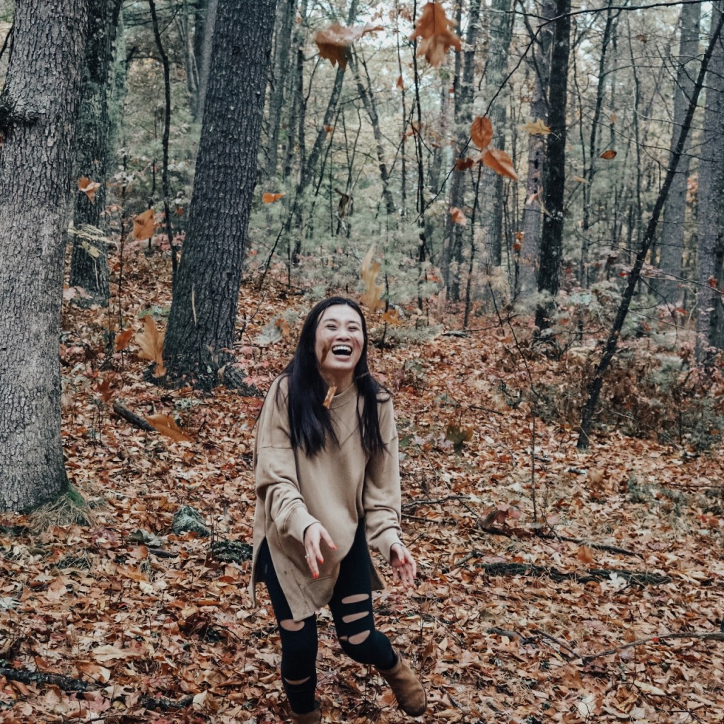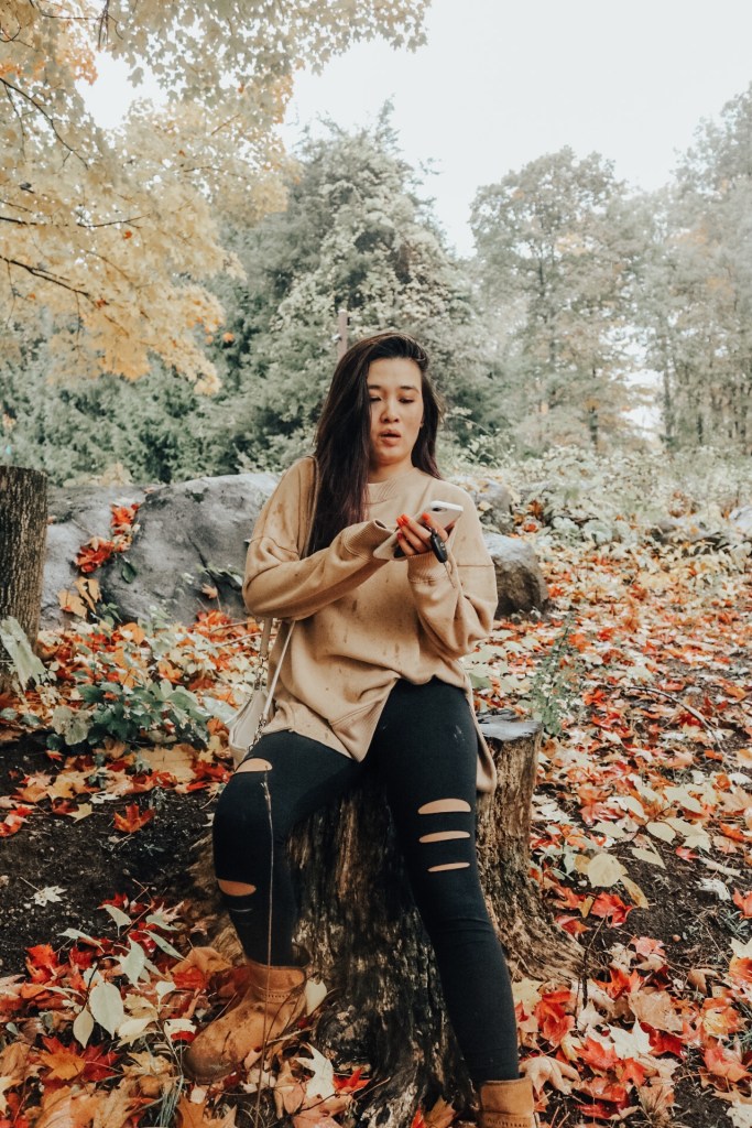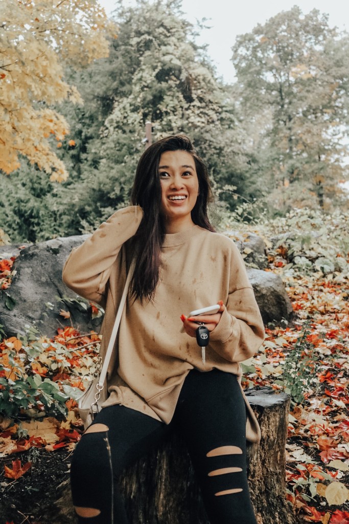 So I’m sure we’ve all seen those photos where people throw leaves in the air. We had to have a few of our own. The only problem was that since it was raining, the leaves were all wet and Vy and I were iffy about that. We are a little high maintenance when it comes to things like that. Gotta do it for the instagram though.